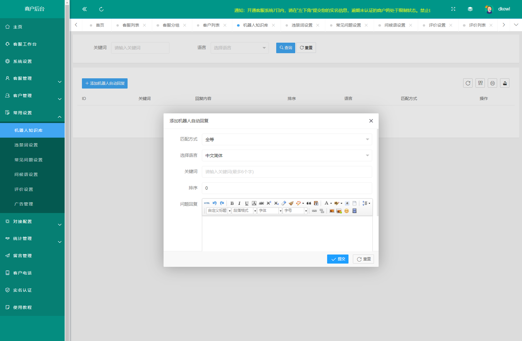 运营级在线客服系统源码 附教程admin7个月前发布关注私信04510 简介: 运营级在线客服系统源码 附教程 亲测 运行环境:Nginx + PHP7.3 +MySQL5.6 图片: 总后台: 商户后台: © 版权声明文章版权归作者所有,未经允许请勿转载。THE END免费资源 喜欢就支持一下吧点赞10 分享QQ空间微博QQ好友海报分享复制链接收藏